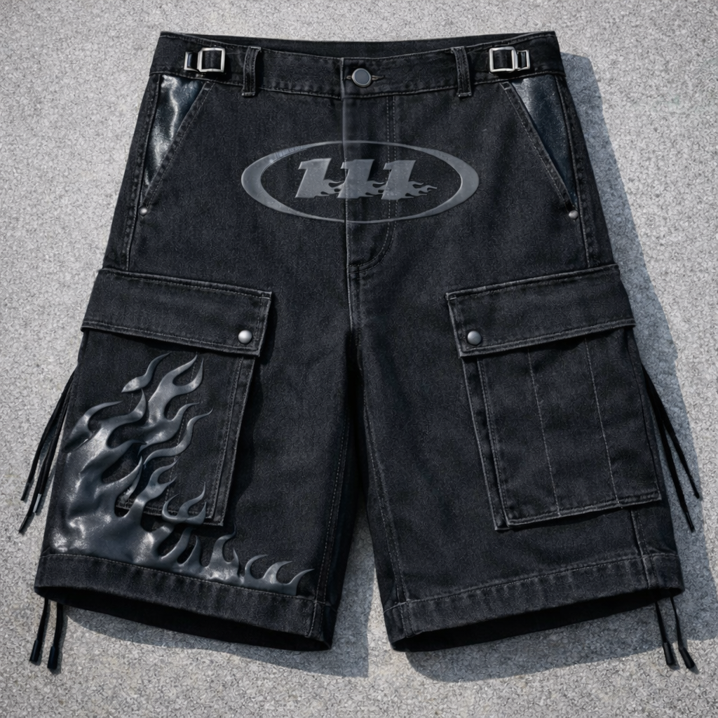 Concept Only, Not for Sale. AT FIRST SIGHT Black Long Denim Shorts